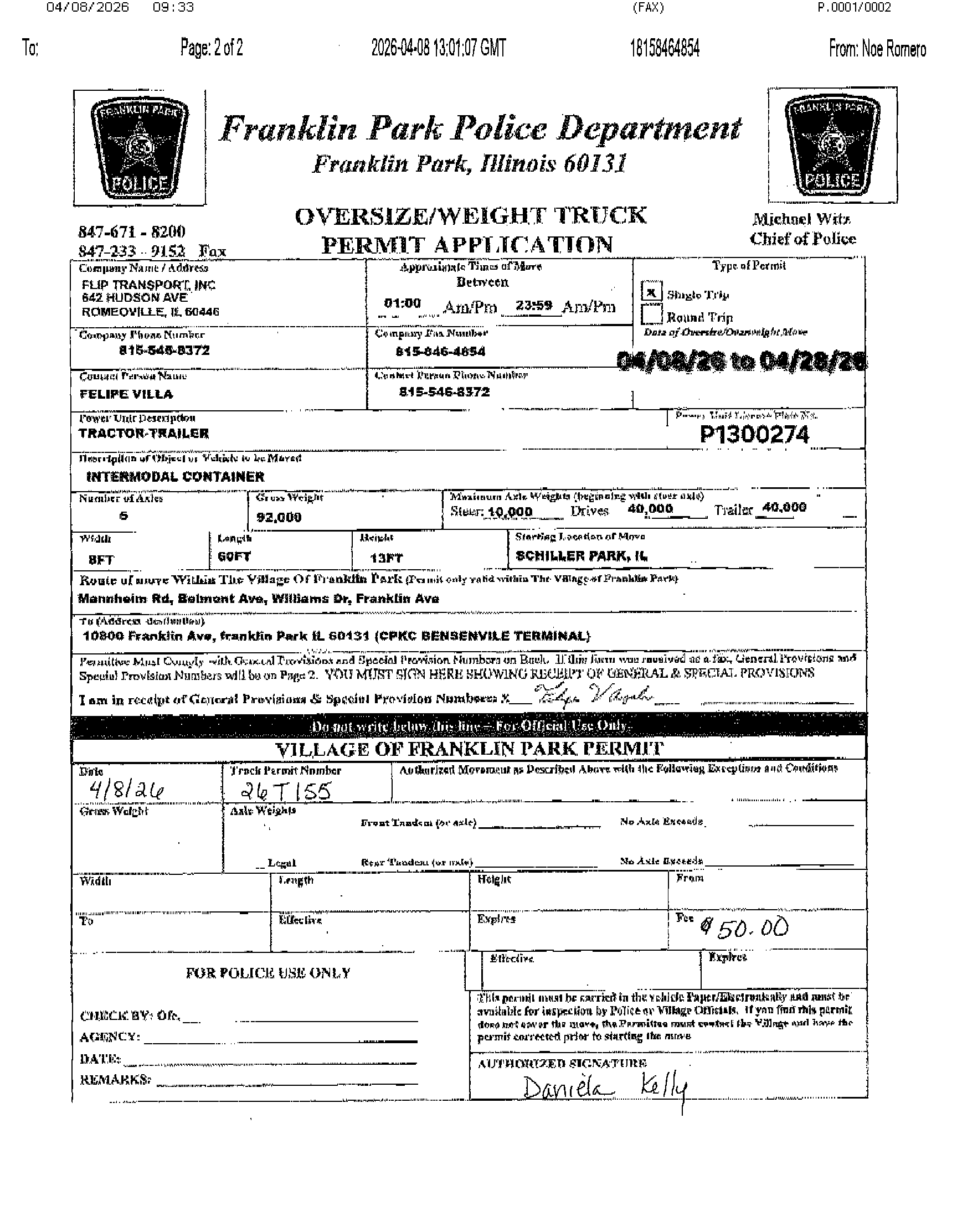 INSPECTION F-PARK PERMIT |
